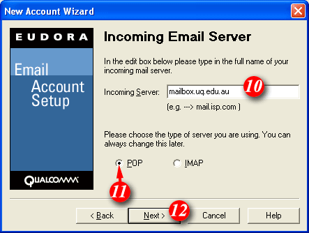 8)By default Eudora will enter part of your email address as the username. Delete this information and enter your 'email address' (for example: me@mydomain.com). | ||